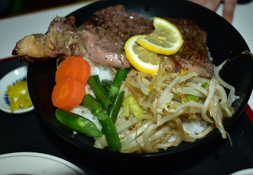 道中、口コミ等確認するとランチの営業終了は食べログだと15時、Googleだと13時30分、週末は予約客のみの場合もあるとの記載がありちょっと不安でしたが、到着すると営業中の札があり無事にステーキ丼にありつけました。