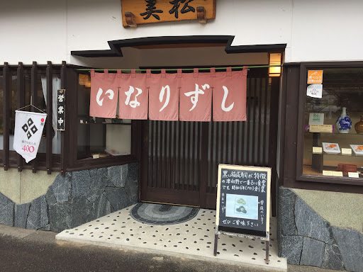 津和野大橋を渡り太鼓谷稲荷神社の一ノ鳥居を潜り、更に鉄橋を潜り抜け約100mほど 歩くと「黒い いなり寿司」が名物の食堂「美松食堂」さんが在ります。 営業時間は10時から17時まで定休日は水曜(毎月1日・祝日は営業)です。 店内はそんなに広くはありませんが稲成神社参拝客の人気店だけあってお客さんは多いです。 この日もお持ち帰りのいなり寿司を買いに立ち寄りましたが、店内は満席状態で待ちのお客さんも行列ができていました。 この行列はイートインのお客さんも、いなり寿司テイクアウトのお客さんも混合ですので、テイクアウトであれば店員さんにテイクアウトである事を伝えましょう。 テイクアウトのお客さんは別扱いですのでスムースに会計が済みます。 イートインのお客さんと一緒に待っていますと時間ロスが大きいですよね。 さて、名物「黒い いなり寿司」のお味は・・・凝縮した醤油の旨味がしっかりとしみ込んだ油揚げと酢飯が・・・酢飯が・・・油揚げの味が強すぎて酢飯がわの味がわかりません。 おそるべし秘伝のたれ! 稲成神社参拝の際には是非!