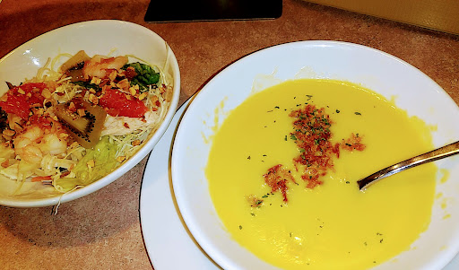 この値段でオレンジ100%ジュースが飲みたいだけ飲めて、スープも好きなだけ。 いいじゃないですか。
