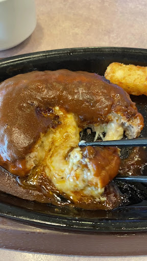 ハンバーグを箸で割ると肉汁と共にトローリチーズが溢れ出る。 ライスとの相性は言うまでもなく最高👍 ハッシュドポテトもザクザクで美味しい。 あっという間にペロリ😋
