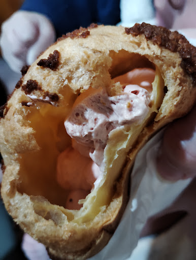 えミスドのピエールエル◯より美味しかったです!恥ずかしながらこちらの店舗の存在を知らなくて、聞くと全国にあるそうです。イオンに入ってることが多いそうです。 甘いものはそんなに好きじゃないけど、ここのシュー皮はクッキーまぶしてクリスピーだったり、チュロスの中にクリームなんて、なかなか好きです。 そして最も気に入った点は、クリームが(に多分かすかに塩が入ってて)甘すぎずとっても美味しかったです! チョコクッキーのチョコがけのチョコクリームのやつも、同じく甘いものに興味ない夫がペロっと食べてましたんで、あ美味しいんだなーと思いました。 小さいサイズのクッキーシューがカップに入ったものなどはサイズ感がいいですし、いろんな種類が1つずつ入ったバラエティパック的なのもあって、パッケージとしてもなんか気が利いてて頼み...