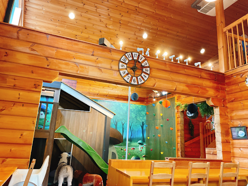 Read more自分が行きたかったので、ここのお店で子供会を開くことにしました。 年齢は年少~小6の親子数人でしたが、ランチが出てくるまでの間、 ロッククライミングに、絵本、滑り台、乗り物、壁紙のart。子供達はよい時間を過ごせたのではないかと思います。
