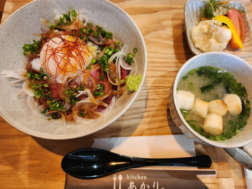 Read moreお店の外観が民家みたいだったので1回通り過ぎてしまいました(笑)店内は広くはありません。カウンター席が6つ程、2人掛け1席、4人掛けテーブルが2席。ランチメニューの牛すじカレー(限定5食)とローストビーフ丼(限定5食)があったので注文…んまいっ❗カレーも牛すじがとても柔らかく、ローストビーフも美味でした🙂✨ご飯の量が多めな感じでした。単品で唐揚げもいただきましたがイケましたね✨他にもエビの料理も美味しそうだったんですがお腹的に無理だったので次回のお楽しみ🤗✨ 日曜日昼前に行きましたが混雑なく食事ができました。ご夫婦?2人でお店をされてるみたいでしたが気さくな方で印象◎です🥰店内もすごくお洒落な感じでした👍津山に行く...