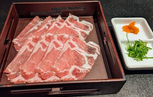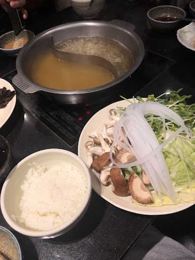 Read more12時に入ったのですが人が少なかったのでスムーズに入店! 今回、六穀豚食べ放題コースを選択しました! 出汁は、定番の「昆布だし」とは別に、「鶏旨塩だし」、「韓国風味だし」、「すき焼き風だし」の中から、好きなものがもう1種類選べ、2種類の味わいで楽しむスタイルなので、 今回は、『昆布だし』✖️『さっぱり鶏旨塩だし』を選択しました! ・・・瀬戸内六穀豚のコースにしたのですが肩ロース・バラのロースが品切れで無かった・・・(´・ω・`) 店舗によって違うかもだけど岡山のイオンだと白菜やレンコン、ネギ、シイタケなど20種類以上の旬の野菜をドドーンと用意! ・・・に対し津山店は野菜の種類が5種類くらい・・・とにかく野菜の種類が少なくてびっくりしました・・ 規模が規模だから仕方ないのですが・・もう少し野菜の種類が欲しかったです・・・ えのき好きなんだけど無かった・・・orz 置いてる野菜も昨日の残った野菜を冷蔵庫からだしてそのまま置いてる感じ・・・。 お肉の方は最初に来た肉は冷凍カチカチで・・・ 2回はちゃんとした(?)のが来ました・・・ 見た目も違うし一回目のは普通の豚バラで 昨日スライスして残った肉を凍らせたやつをそのまま提供したのかも・・・・( ̄▽ ̄;) 後、ちょっと衝撃だったのがご飯の茶碗ですかね・・・ 綺麗に洗えてないのか前の人のカチカチのご飯がこびり着いていて・・・ それが一つではなかったのは流石に引きました・・・。 味噌汁はIHの火力を最大のまま放置されていて物凄い勢いで沸騰していました・・・流石にコレはやばいと思ったので保温に設定しました。(⌒-⌒;...