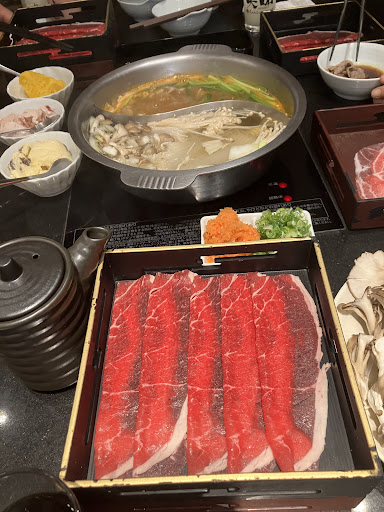 よく利用しますが、味は美味しいです。良い時は野菜やご飯が補充されていますが、悪い時はご飯時に炊飯器が2台ある内2台とも炊飯中だったり、野菜やコップ、ストロー、薬味、スプーンは補充されていませんし、机にお玉やアク取り容器が置いてなかったりします。 注文時に60歳以上が1人、10歳以下が2人います!と伝えていたのに、お会計では値引き前の値段を提示されたり。自己申告ではなく定員さん自ら聞いてくれる方がありがたいですけどね。過去にもお会計で疑問に思ったり、注文と違うお肉が来たり… 効率性とか引き継ぎとか教育とか、なんかもう…しっかりしてほしい。味は美味しいしコスパがいいから好きなので今回は大丈夫かな?と訪れますが、モヤモヤが残る。 R7.6/11追記。 メニューがリニューアルされており、凄く良くなっていました!! 従業員さんも優しく丁寧に説明をしてくれ、常に周りを見ていて野菜やご飯など少しでも少なくなったら直ぐに補充されていました。 ◎メニューにドリンクバー180円&デザートバー580円が新たにありました! ドリンクバーなどは人数分付けないとダメみたいです。 しかも、誰か一人がデザート食べたかったら全員デザートバーにしないといけないというよく分からんシステムでした; ソフトクリームは前のままで、新たに小さいケーキ、ゼリー、ロールケーキ、一口チョコレートなどがあり、なんと! ハーゲンダッツのアイスが8種類?くらいも食べ放題でした!! アイスクリーム屋さんみたいに自分ですくって取るシステムです。めっちゃ凍ってて硬すぎて取るのに肩が凝りそうでした…笑 多分一時的なものなので改善はされるでしょう… そして!チョコレートフォンデュマウンテンもありました!! ハートのマシュマロやパンケーキなど5種類くらいをチョコにつけれます。 子供も大...