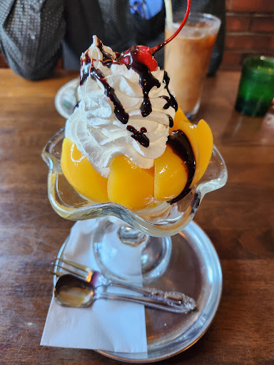 ピーチサンデー・・桃缶の桃でしたが、桃が表面だけでなく、パフェの見えない奥にも詰めんでありました(笑)食べごたえ十分の豪華なパフェでした♪美味しかったです。