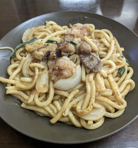 どこのホルモンうどんが美味しい!とかはわかりませんが、初めて食べたのがこの店でした。 食べ比べしてないので、わかりませんが 鉄板で焼いてるから美味しかった。 関西なので、どうしてもそちらと比較してしまうが、ホルモンうどんはソースコテコテではない上品な味付け