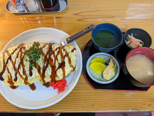 ホルモンうどんオムレツのセットを注文。 15分くらい待ったかなと思います。 すぐ側で焼いてくれるので、ソースの匂いと音を楽しむことができます。 ホルモンうどんは初めて食べたのですが、焼きうどんの肉がホルモンになっている感じでした。 ホルモンは多数入っていて、いろんな食感が楽しめました。ソースはお好み系の甘辛いソースでしたがバッチリ合っていました。 味噌汁は家庭的で筍も入っていました。