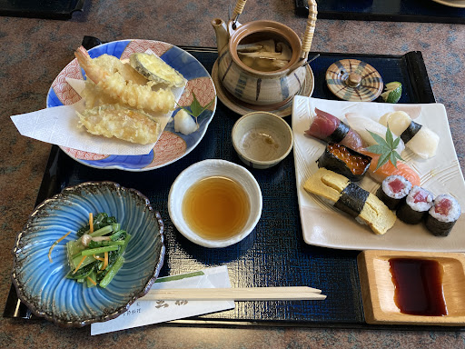 メインが天ぷら、ステーキ、すき焼きがあり、 全てにお寿司、茶碗蒸し、お吸い物、デザート、おひたしがついてます。 お値段はどらも3000円いかないのでコスパ良いと思います。 見た目は一般的な和食で、和食の王道のように思いますが、どれも丁寧に、繊細に味付け、隠し味を楽しめます^_^