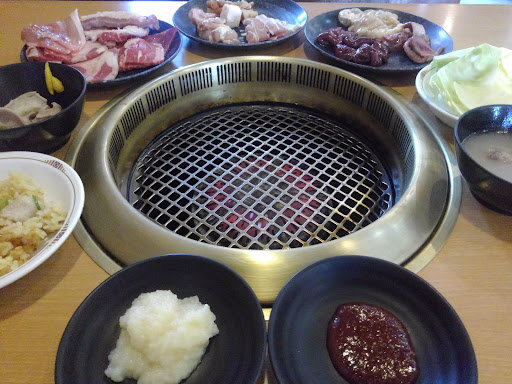 2ヶ月ほど出張に行った時に毎週のように通っていました(笑) とにかく、お肉でお腹を満たしたいのならココです! ドリンクを付けて2,000円から3,000円で満腹になります。 5回以上通うとドリンクが安くなりますが、短期滞在者は恩恵に与れませんね、残念! ビールの飲み放題も平日は1,000円であるのですが、代行が必要になります・・・ ジャンケンで負けた人が運転、となると揉めるので諦めた方がいいでしょう(笑) 牛、豚、鶏の他に、ウインナー、つくね、サラダ、キムチ、スープ類、カレーライス、ガーリックライス、炒飯、ラーメン、揚げ物、シチュー、おでん、鮨、ケーキ、フルーツ、アイスがあります。 カレーは甘口なので大人には辛いです(涙) 大人用の辛口スパイスカレーが欲しい・・・別料金でも良いから欲しい・・・ 辛味噌ダレをカレーに混ぜて食べました(笑) オジさんの店員が多い週と、若い女の子の店員が多い週が交互のようです。たまたまかな? 男性店員だとこまめに網を交換しに来てくれます。30分に1回ぐらいの割合かな。 女性店員だと焼肉に慣れていないのか気づかないようですが、牛脂を引けば何とかなります。 テーブルで一生懸命メニューとか店内の説明をして下さいましたが、 「べ、便所は中央付近にございます」 と言ったのには笑ってしまいました。 アルバイトの子だったのか、お手洗いって言葉が出てこなかったのでしょうね(笑) それとも店長の教育が厳しくて、接客に緊張していたのでしょうか? ガンバレ、女の子! 大通りに面している店で駐車場も広いので、1度行かれてみては如何でしょうか 学割もシルバー割もありました。 毎月29日の「肉の日」は、ワンランク上の高級部...