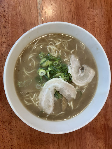 ラーメンは豚骨のみを使用し、呼び戻しという製法で作る独特な風味と濃厚さを楽しめるスープ。豚骨のダイレクトな強さを感じるスープで濃くもあり、あっさり感もあり気付くと飲み干しているような病み付きスープ。 細ストレート麺とよく絡み美味しい。ネギ、チャーシュー、めんまも昔ながらのスタイル。
