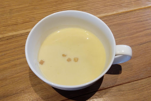 相変わらず手の混んだ美しい前菜と赤ワイン🍷から 温かいスープが今日はありがたい。