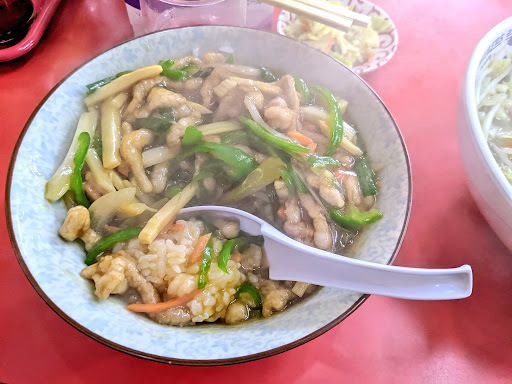 Read more免許センターへ行った際に 教えて貰ったので 初【珉来】 何を食べれば良いか迷いましたが、店名が冠になってる「珉来飯」と「珉来らーめん」を食べました。 普段、丼物を食べないので珉来飯が着丼した時は大きさと重さに 参った。 肝心の内容は、青椒肉絲のような感じの餡掛けがトロリと乗ってて、胡椒をかけてみたり ボク的には酢を掛けてもイイなぁと思いなから頂きました。 ご飯少なめにすれば良かった そして珉来らーめんは、さっぱりとした中華そばに珉来飯の餡掛けが乗ってる、正に飯のらーめんバージョンでした(^^) 当然ですよね。 どちらも美味しかったです。 次は焼豚炒飯を食べたいと思います