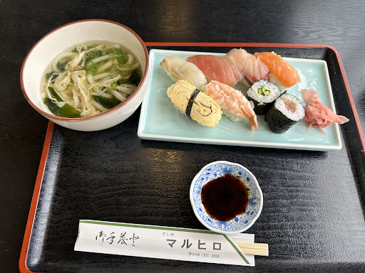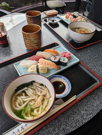 Very cheap sushi shop with free big parking!!! The udon and 7 pieces of sushi set was only 770 Yen, even on...