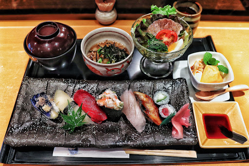 Read more宇陀市の人気お寿司屋さん『寿し善』で絶品!寿司ランチを征服するべく行って参りました👾 . . 165号線から交差点曲がればすぐ店舗があり、オープンと同時にお店前の駐車場が満車🈵人気のお店です👾 . . 店内は広く掘り炬燵の半個室部屋も寛げる感じ♪カウンター席も広く、ゆったりお食事が楽しめました👾 . . お昼はランチメニューのみで ✴︎にぎり7貫 ✴︎赤出し ✴︎サラダ ✴︎お蕎麦 ✴︎デザート がセットになった、ひのきをチョイス👾 . . どのネタも美味しくて大満足♪ネタも大ぶりで食べ応えも抜群ですよ♪特にマグロが美味しかった👾 . . 喉越しのいいお蕎麦や赤出しも美味しくてコスパも良く宇陀市でお寿司食べるに...