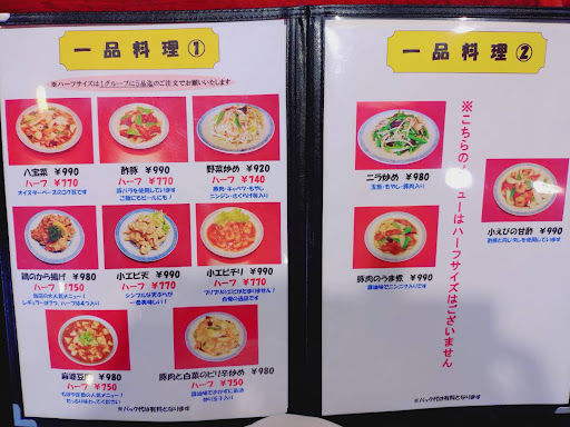 ジャンボ餃子がとても大きくて、美味しいです。もちろん他のメニューも美味しいです。酢豚も最高です。 とにかくオーダーしてからテーブルに届くのが早い!!チャーハンも熱々で食べられるし、酢豚の豚肉最初は火傷するほどアツアツ‼️ 八宝菜や中華丼はお店によっては薄めの味付けが多いですが、こちらは醤油ベースでけど醤油辛すぎないので飽きがきません。 ほぼのメニューにハーフがあります。 から揚げもよっぽどじゃない限りハーフにしないと多いかもです。 ハーフで大きなから揚げが4個ありました。