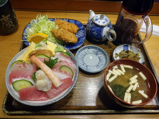 Read more月1ペースでよくランチで利用させていただく。 ランチは海鮮丼、揚げ物、漬物とみそ汁が付いて750円 漬物みそ汁は季節もの?だったりと毎回違うこともある