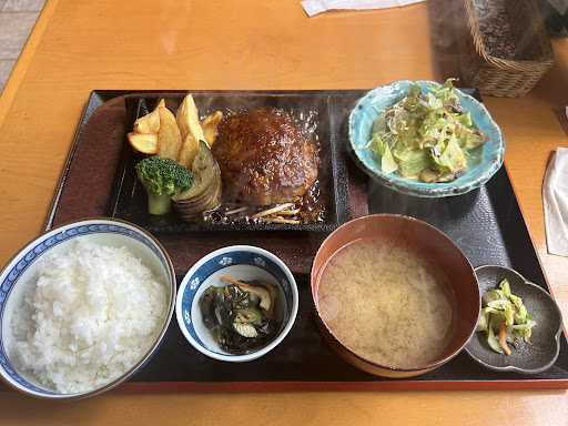 Read more長野大学近くにあります 蕎麦の登りがたくさんあり、蕎麦が売りなのかな?と。 確かにお蕎麦美味しかった! ハンバーグも味がしっかりしていてご飯が進みました。熱々で美味しかった 食後はコーヒー1杯無料☕️で飲めます! 店内広いです 団体様も大丈夫そうですよ。もちろんおひとり様でも大丈夫な席もあります。 駐車場も広い🅿️...