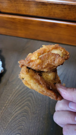 Read more2025’1.22 和風チキンカツバーガー今だけ590円にそそられて来店 初めてのような遙か昔若い頃来たっけ? と思うような懐かしきThe昭和の店内 なのに注文はカウンターのタブレットでセルフなのが不思議 セットのポテトが味薄くて 塩!塩くれーとカウンターまで行くも塩は無し 代わりにケチャップをどうぞとこれもセルフ 他にもなにかソースが並んでいるが これは食べ放題のお客さん用なんでと言われ 混在して並んでいるのにややこしい えびプリプリフライも食べたかった事思い出して テイクアウトで追加注文 即渡されて 在庫出された気配 案の定 席でチェックしてみたら 揚げたてじゃないやんかー💢 テイクアウトでと言ったものの 帰り車の中で食べるつもりだったのに んー( ・᷄ὢ・᷅ )めちゃ不満 ケンタは在庫で出されるの多いらしい 公式ホームページにメニューの値段出てないのも 下調べして何食べようかと予算立てることも出来ないのが気に入らない たまに限定のお安いセットメニューだけ値段表示 だから今回そそられて飛んできたけど...