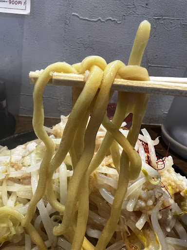 ◎麺・・・インスパイア系らしい、太麺でモチモチとした食感です。小麦の味はそんなに強くは感じられません。 ◎具・・・豚が冷えていたので、しばらくスープに浸した方が美味しく食べられます。野菜は、もやしとキャベツ、アブラはやんわりとした味付けアブラです。うま味調味料の甘味がある気がします。ニンニクはやや辛めの粒が細かいものです。マシだとかなりの量が入るので、そのままでもよいと感じるぐらい後半、ニンニクが主張してきました。 ◎スープ・・・オーソドックスなスープですが、比較的さっぱりしています。
