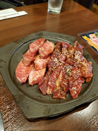 焼き肉が食べたくなり、いつもと違うところに行こうと思って検索し、初めてここに行きました。まず、信号のある交差点の角にあり、駐車場も広く停めやすかったです。中に入ると予約かどうか聞かれて、予約しないと入れないような雰囲気を店員さんが醸し出し、一瞬不安になりましたが、無事は入れました。個室形式でくつろげ、注文方法は今時のタッチパネルでやり易かったです。無料でお冷ややおしぼり、網交換などもタッチパネルでできました。ただ、それに私が気づいたのは食べ終わったあとなので知っておくといいですよ。さて、肝心のお肉ですが、いろんな種類がありました。普通に美味しかったのですが、火が強すぎたのかすべて焦げぎみになってしまったので皆...