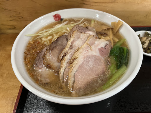 (2023年3月2日訪問)上野村は山梨→埼玉→群馬→長野→山梨という周回ドライブルートなので再訪。味噌ラーメンが薄く感じたので、今回は猪豚チャーシュー麺(醤油)をいただきました。あっさり醤油で、雑味がなくクリアです。あっさり&クリアといっても余韻が短くすっと消えてしまうのではなく、出汁の味・コクを感じてからふくよかな余韻がすぅぅぅっと続きます。 味の濃い都会の派手なラーメンではなく、また昭和の中華そばでもなく、洗練された滋味の深い美味しいラーメンでした。丁寧に出汁をとっているのがわかります。 また、猪豚チャーシューもまったく癖がなく、かといって豚肉のチャーシューとも異なる肉質・脂身で美味しかったです。 ちょっとだけ気になったのは岩のりですね。地元の食材でつくっているので岩のりは余計かなとも思うし、岩のりがなくてもきちんとまとまっているし、岩のりの香りがあるのもいいし……どっちも捨てがたい。ひさびさに一杯のラーメンで考えさせら...
