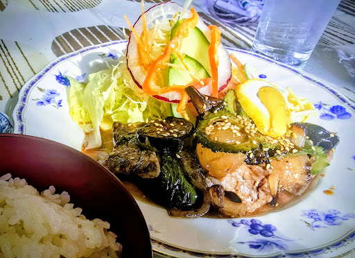 ごはんおかわり、赤だし付きで赤だしにもおくらやさつまいもが!