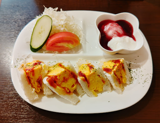朝早くからモーニングをされているとのことで行ってみました。 駐車場がないので、近くのコインパーキングに停めていきました。 一瞬やってる?と思いましたが、お客さんらしきは人が中にいたので、勇気を出して入店! 入ったら優しそうな男性が迎えてくれて、ホッとしましたε-(´∀`*)ホッ 外からはカウンターしか見えませんでしたが、奥にテーブル席もあり、そこに着席。 厚焼きタマゴのサンドイッチを注文しました。 調理場から卵をかき混ぜる音をBGMにゆっくり…。 出てきた料金はボリュームたっぷり! サンドイッチは出来たてほやほやでケチャップと合いました💕 ヨーグルトもソースが甘くペロリ。 サラダの野菜も甘くて美味しかったで...