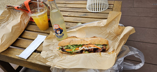 An excellent little shop serving bahn mi variations. I've never had a bahn mi before, so I can't speak to the authenticity of this sandwich, but what I do know is that I had an incredibly delicious sandwich, filled with super tender and flavorful pork belly! The ginger ale (very gingery! closer to ginger beer than normal ginger ale) and passionfruit juice (?) were also delicious. There's a small standing-room only bar in the shop, otherwise there's a little outdoor area at the end of the hallway that has a few seats as well. Absolutely recommend if you're looking for a really...
