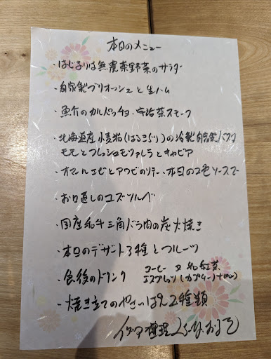 ランチ、ディナー共に2組限定。要予約。 駐車場も2台。 里山でイタリアンを経営されており、新鮮やお野菜や美味しい魚介類を堪能出来ます。ゆっくりと食事を楽しまれたい方向き。 パンは山盛りなので持ち帰り前提(笑) サラダ、前菜2種、パスタ、魚、ソルベ、肉、デザートとフルコースで頂きました。 サラダは様々な新鮮野菜がふんだんでナッツのドレッシングがとてもヘルシー感があって良いです。序盤から期待がかかります。 前菜はスモークされたエビとホタテ。提供時は蓋をされていますが目の前でふんわりとスモークが上がる姿はワクワクしてとてもいい香り。生ハムとブリオッシュは生ハムは塩がきつすぎず、ブリオッシュがサックリとしていて美味しい!個人的にはコレが一番好き。 パスタはピンク色でしかも冷たい。 ビーツを練り込んだパスタで見た目も綺麗。 モッツァレラと桃のソースでフルーティーな仕上がり。胃にガツンと来ないので後の料理にも響かない🙂 魚はオマールとアワビ。先ほどもエビと貝だったのでお魚が良かったな(笑)でもアワビも柔らかくて美味。 しっかり味の柚子のソルベからの前バラのステーキ。スモークされた岩塩がスモーキーでお肉を引き立ててくれて美味しい。 手焼きと思しきお皿たちに乗ったお料理はどれも美味しかっ...