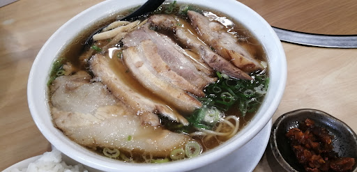 令和7年5月19日、ランチで伺いました。我が家からのアクセスは良いのですが、生活圏と逆側なのでなかなか行く機会に恵まれず…美味しいとの噂だけ聞いておりました。ようやく此方のラーメンをいただいた感想は、老舗ならではの安定感と、京都のラーメン屋ならではの汁まで残さず飲めるコクが有るのにキレがある、優しい中にも鋭さのある味わいでした。麺は最初の一口目に、特に小麦の風味を強く感じる事が出来る細麺で、透明感の有るスープに良く合います。スープは前述してしまいましたが、馴染みの優しい味でした。お腹が空いてたので「焼き肉セットご飯抜き」と「匠餃子」もいただいて、モヤシチャーシュー麺にして楽しませてもらいました。チャーシューは大きすぎず小さすぎず、柔らか目のジューシーなタイプで良い感じ。脂身が少ないのにジューシーで柔らかいのは素晴らしいです!ただ、最近は個性的なラーメンが増えてますので…驚きはなかったです。店員さんのオペレーションは素早く、注文から着丼までは5分以下?味変アイテムも有るので人気店であるのが納得出来る美味しさでした。他のメニューも試したいのでまた行きま...