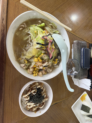 今日は松橋にあるめんきちにお邪魔している。 ちゃんぽんのお店だが油そばを食べているお客さんも大勢いる。食券を買うタイプで、店内に入ると食券を買うように進められ、油そばにしようかちゃんぽんにしようか悩んだが…ちゃんぽんの肉飯セットにした。運ばれてくる他のお客さんの器を見ると量が多そうだ。ちゃんぽんだけでも良かったかもしれない😅 店内はカウンターだけだが35名ほど座れる。12時前に入店したが既に満席状態で人気を伺わせている。 厨房では4人で切り盛りしていて手際が良い。 みんな黙々とほうばっている。回転も良さそうだ♻️ 駐車場も店の両側にあるかなり広めだ。 到着が待ち遠しい😁 いよいよ到着。まずはスープから…コクがあり美味しい😋そして野菜…キャベツをいただいたが茹ですぎでシャキシャキ感がないのが残念😢もやしはシャキシャキしてて美味しい😋野菜がかなり多めに入っているため体にも優しい😊肉飯も美味しい😋そして野菜を食べ進めるやっとで麺に到達🍜中太のストレート麺。これも美味しい😋セットにしなくてもちゃんぽんだけでも十分お腹いっぱいになる。 今時間は12:30席にも余裕ができてきて落ち着いてきた。もうお腹いっぱいだ。 これから来ようという人で時間に余裕がある人は12:30回ってからがおすすめだ。駐車場もそのくらいの時間なら空きがあり余裕がある。 ご馳走様でした。本当に美味しかったです。 次はまぜそばを食べたい😊