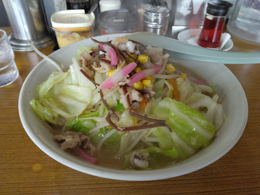 Read more土曜日のランチにめんきちさんに伺いました。時間は13時過ぎ程。店に入ると直ぐ右側に券売機がありますので、チャンポンの食券を購入しました。厨房を囲むようにコの字型のカウンター席のみですが、座席数は結構あります。 調理の過程が見える奥の方に座りました。大きい中華鍋で数人分を一気に作られているようです。先ずは具材を炒め、スープを投入、それからもやしを煮込んで、どんぶりの麺を覆い隠すようにもやしを乗せて、更にその上に具材を乗せて完成。比較的短時間で作られていますね。 大きい蓮華(通常の2倍サイズ)で、先ずは熱々のスープを一口。おー、ちゃんぽんと言えばこれやな、、って感じの王道のスープ、嫌いな人は少ないと思う。味も結構濃い目です。 キャベツとか野菜の炒め具合も丁度良く、濃い目のスープが絡んで美味しいです。もやしがとにかくたっぷり入っているので、下から麺を引きずり出して、野菜と一緒に食べます。 麺も食感が良く美味しいですね。益城の富喜製麺所さんの麺でしょうか?全体のボリュームがかなりあるので、普通の男性ならお腹一杯になると思います。 途中からかなり満腹感がありましたが、野菜が多いので、何とか食べ切れました(-_-;) 隣の方は大盛ちゃんぽんを食べられていましたが、どんぶりも一回り大きく、凄いボリュームでした!自分はとても食べ切れる量ではなかったです。本当にお腹一杯になりました。なかなか美味しいちゃんぽんですが、量が多いので、お腹を空かせて行った方が良いです!ご馳走様...