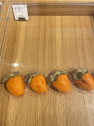 秋きたし 315円 本物の柿のような美しい見た目と、中には柿を使った餡が入っていました。干し柿のような香りの餡。上品で濃いお茶といただきました。