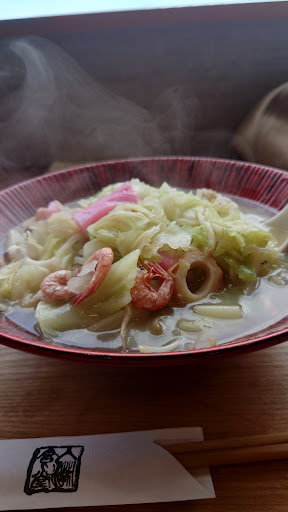 Read more晩秋のよく晴れた週末に伺いました。人気店というのを失念して11:45頃に到着すると、おそらく第2陣が入り始めた頃で4組待ちでした。 人数の都合で先に通していただけ、注文して30分弱で頂くことができました。こじゃれて大変きれいな店内、そして大変忙しそうなのに店員さんは丁寧な応対、とても印象に残りました。 薬膳ちゃんぽんと餃子を頂きました。薬膳ちゃんぽんは、独特の美味しさと優しさがあり、深みはあるけどくどくない、豊かな味でした。他にはない味わいで、大ファンになりました。 ぎょうざは一口サイズ、おそらくにんにく無しでしょうか、しっかりした美味しさはありますが口の中に味の残る感じはありませんでした。これまた美味で、パクパク頂きました。 今回は厨房側の席でしたが、海側のカウンターだと眺めも素晴らしいと思います。 大人気なのも納得のお店でした。こちらでお昼を頂き、隣のカフェで一息つくと...