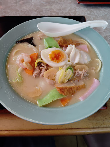 Read more雲仙温泉の帰りに寄らせていただきました。店舗前の駐車場は10台分あります。 いわゆる「町の中華屋さん」的な雰囲気で、観光地のレストラン然としていません、家族経営のアットホームな雰囲気がいい感じです。 立地的には諫早市と小浜町を結ぶ国道57号沿いにあるため、通りすがりの観光客も多いようですね。 店内に入ると、衝立にメニューがずらりと貼り付けられ、入り口横の窓にもメニューがあります。席はテーブル席と座敷があり、座敷は三卓で、四人掛けテーブル席が五つありました。 今回はBセット(ちゃんぽん+チャーハン)を注文しました。味も店の雰囲気と違わず、「町の中華屋さん」って感じで、良い意味で懐かしい味だけど、しっかりと具の風味が味わえました。 床は中華料理屋さん特有の少しツルツルした感触だけど、滑って転ぶような危険さはありません(笑)。そして格天井には鮮やかな弁柄色の天板に縁起の良い亀甲文様が刻まれており、豪華な設えが店全体の作りにそぐわない不思議な感覚でした。 2023/04/29...