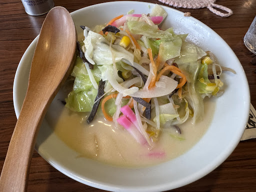 定食もいろいろある。 メニューみて、人気第一位のちゃんぽんと、子どもは第二位のカツ丼、家内は皿うどん太麺。 チャンポンはマイルド系でやさしい味、野菜と貝と具沢山。 あっさりして美味しい(^ω^) カツ丼、甘めでめちゃ美味いって食べてましたヾ(´∀︎`)ノ゙ 皿うどんは、ソースとこしょうを好みで食べてくださいとの事なので、少しかけて食べてました。