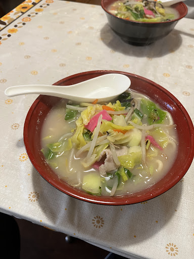 Read more2025年2月15日訪問 ちゃんぽんが美味しいとの口コミを見てちゃんぽんを食べに立ち寄りました。 結果は残念ですがちゃんぽんの味は星一つとさせていただきます。(ほかのメニューは分かりません) お店の雰囲気やサービスを考慮して星二つとさせていただきます。 お店は昭和感漂うノスタルジックな雰囲気でなかなか良かったです。 ちゃんぽんが運ばれてきた時にまず、あれっ?っと思ったのは、器がプラスチック容器で、厚さも屋台のテイクアウトかと思わせるくらいペラペラですぐにスープが冷めて行きました、、、 具材は写真の通り、キャベツ、にんじん、もやし、キクラゲ、豚肉、えび(冷凍むき海老)かまぼこ、、、もう少しイカなどの海鮮が欲しいところ、、、 スープは市販のスープがベースなのか、具材の煮込みが足りないのか、要するに具材の旨味が全く不足しており、いわゆるスーパーに売ってるスープの味、、、 麺も袋詰めから出した時のままの折れ目が残ってる、、、いわゆるスーパーで3袋で百円と同程度の品質で、煮込みも足りないのか具材と、スープと一体化していない、、、 最後に価格ですが、このクオリティで900円は、きっと観光地プライスなんだろう、と割り切りました、、、 色々と素直に本音で感じた事を書いてしまいましたが、ほかのメニュー(トルコライス、うどん、蕎麦など)色々あるので、他のメニューが美味しいのかもしれません(メニューの写真は他の方の口コミを参照ください)。 ただはっきり申し上げて、このお店のちゃん...