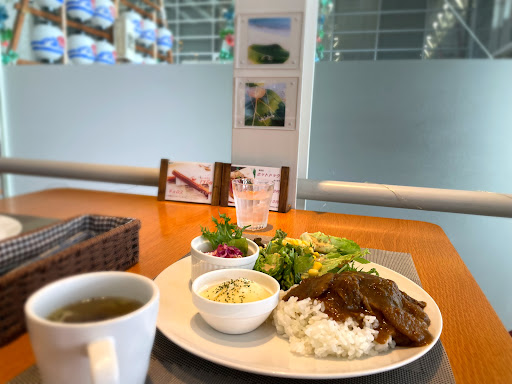 Read more日曜日の12時30分頃初めて訪れました。以前SNSでありそドーム内にお洒落なカフェがあると聞いていたので楽しみにして行きました。何度もありそドームは訪れているのにお店の場所が分からずアリーナをグルグルしてしまいました。よく見たら入り口左側2階にガラス張りのお店が!お客様がいなかったので眺めが良いガラス側のテーブルに着きました。ランチメニューから10食限定の牛すじ煮込みカレープレートを注文、セットのドリンクはホットコーヒーを☕️綺麗に盛り付けられたワンプレートランチに感動!カレーは一口食べて牛すじがよく煮込まれていることがわかりました。スープにはもずく、サラダは野菜もたっぷり入っていて美味しかったです。 コーヒー豆を一杯づつ挽く本格的なコーヒーと追加でチェロスを注文してゆっくりさせてもらいました。お店の店員さんはお洒落で丁寧な方でした。軽食やケーキもあったの...