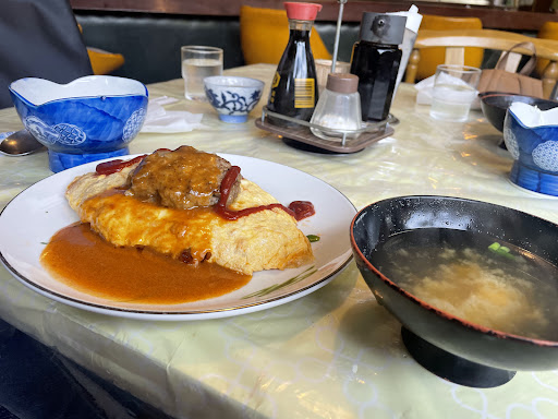 オムライスは少しスパイス感があり、他のお店とは一味違ってます。 ハンバーグは小さめですが、ぎゅっとお肉が詰まっているのと、玉ねぎが大きめにカットされていて甘味も感じました。 若い方にはボリュームは少なめかも?