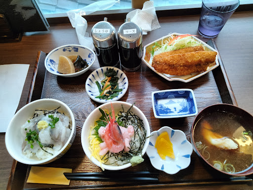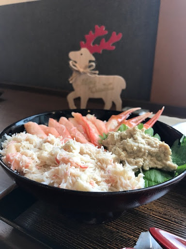 お友達が美味しそうな甘海老丼をインスタに載せていて心奪われました! どうしても食べたくて、その週末に早速行ってきました。 その時は残念ながら甘海老丼はなく、ふくらぎの漬け丼(800円)をいただきました。 しかし、ふくらぎもその日の朝に水揚げされたばかりのもので新鮮でぷりぷりで切り身もたっぷり! カニ汁や小鉢もついて800円はお得だと思いました! しかしながらどうしても甘海老丼あわよくばカニ丼も食べたいと思っていたところ、お友達も行きたいとなり2週連続で行ってきました笑 開店ダッシュを狙い気合い入れて10時20分に到着!先に並んでいらっしゃる方が一組いましたが、何故か先頭を譲ってくださいました。(その節は有難うございました!) 玄関のメニューボードにはなんと!カニ丼も甘海老丼もあるではないですか! 友達2人でそれぞれ甘海老丼(800円)、カニ丼(1400円)は半分こして食べました。 もう!!!最高です!甘海老はあま~くてぷりっぷりでしたし、カニ身もカニ味噌も甘くて2人夢中で食べました! 本当に美味しかったです!近ければ毎日通いたいレベル! 店員さんもとても愛想よく、気が利き、店内には無料wifiもありましたし、すべてにおいて最高でした! 本当は教えたくないけど言わずにいられなかったので口コミ書きました笑 個人的には甘海老丼の方が美味しかったです。 お店は漁港のやっている日のみ10時半~14時(13時半ラストオーダー)でメニューは毎日水揚げによって変わるそうです。 日や季節によりますが、ラッキーなら甘海老丼やカニ丼が お店は魚津漁港からすぐですし、魚津駅からはコミュニティバスも出ています...