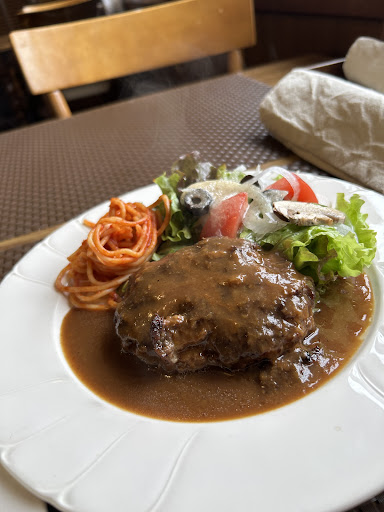 Read more高台にある洋食屋さん。ご夫婦で経営されてるのかな?平日昼に伺いましたがお客さんは自分一人でした。店内はカウンターと、2人掛け、4人掛けテーブルがあります。テレビはなく、BGMを流すスタイル。(厨房からはテレビの音が流れてくるけど…)時期によっては寒いのか、テーブル下には膝掛けが用意されています。最初にスープを頂いた後、注文したハンバーグのランチが出てきました。味はあっさり系と言いましょうか、重さ、クドさがなく食べやすかったです。(ガッツリ系を好む方には向かないかも)テーブルには調味料とスプーン、ナイフ、フォークがあり、箸は用意されていません。駐車場は6台ほど。入り口が坂で見通しが悪いので、出入りに注意(バイクで行く場合は特に)が必要です。キャッシュレス非対応で現...