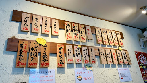 メニュー冊子はない。壁に貼られているのみ。聞くと女性店員に無言で指さされた。 生卵と辛子高菜はセルフだが有料(各50円)。お冷もセルフ。オシボリ・ペーパーもなし。(セルフエリアにティシューの箱がある) 麺の硬さは自分から言わないと聞かれない。デフォルトが硬めなので別に良かったが。