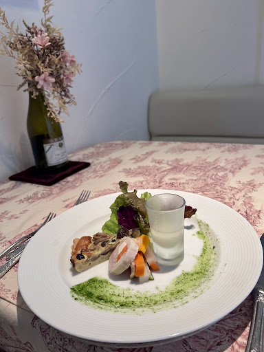 My wife and I went here spontaneously for lunch, no reservation. Reception welcomed us quickly and gave us a private table. Understand that this restaurant does a course menu. Meaning you don’t choose a main dish and call it a day, you choose from a few different priced courses. My wife and I chose the course that came with fish and steak as well as soup palate cleanser and dessert. The course was amazing! Truly French cuisine with some Japanese influence. The chefs even came to our table to explain everything and showed their passion in their cooking. I would go again! I don’t really eat vegetables but the chef said he would not be offended if I didn’t eat them but asked if he could at least plate the dish with the vegetables for the look. My wife ate my vegetables for me haha. They had a large selection of wines that I did not get to partake in but will next time. I’m excited to try their dinner course next!