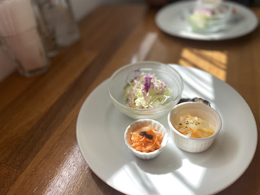 ゆったりした時間の中でいただくランチは、前菜(サラダ系)とスープ、パンもしくはライス、ドリンクがセットで1000円から1500円位の価格帯。量こそ、少なめではありますが、意外に食べるとそこそこ満足。 もし、お腹に余裕がある場合には、デザートを追加しても良いかと思いますし、もしくは、近くに有名なタルト屋さんや、カヌレ屋さんもあるので、お散歩がてら、甘いもの食べに行ってもよいかもしれませんね。