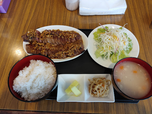 Read moreYouTuberの動画を拝見して来てみた。 開店間際に来訪。 駐車場は店の入口前、道路横の狭いスペース。 営業時間は画像参照。 迷わずO,sプレート300gをオーダー。1600円。 程なく着丼。 鉄板での提供でないのはコストの関係かな? 最初は香ばしいステーキ。すぐ冷めちゃうのは少々残念ですが冷めたら冷めたでローストビーフっぽい。最初から最後迄、肉もソースも旨い。 これを焼き上げ後に細かくスライスしてくれる気配り。箸で食べれる手軽さがありがたい。 ドリンクバー付き。 こんなお店が近くに有れば良いなぁ...