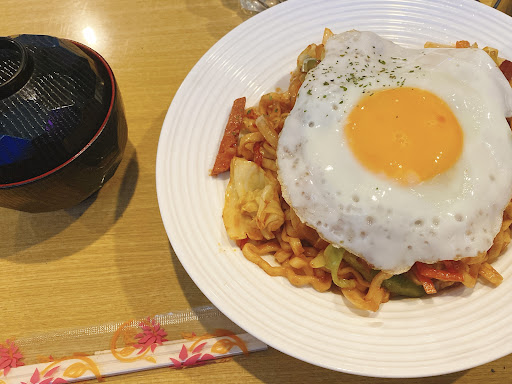 私は焼きそばのケチャップ風味(目玉焼きトッピング)母はスタミナ丼を注文しました。お料理は…炒め野菜もシャキシャキ、汁物等もついて、メニューは品数もあり、選ぶのに迷うほどで充実してます!