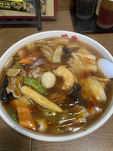 Read more珍来の中でも北関東の茨城や千葉北東部に展開している、 いわゆる「ドラゴン珍来」(看板にドラゴンの絵があるから?とのことですが、こちらの浦安店の看板にはドラゴンはありませんでした)と噂の珍来に初訪問しました。 珍来総本店直営店や珍栄会グループに代表されるようなメニューは無く、独特のオリジナルメニューが美味しいタイプの珍来です。 そしてこちらのタイプの珍来の名物メニューである「うまに麺」こと「珍来麺」を注文。 広義でいう所の五目麺、広東麺と言われる麺料理ですが、 五目あんかけ(海老、イカ、豚肉、ヤングコーン、タケノコ、ウズラの卵、きくらげの餡かけ)がかかったラーメンで、 味付けは醬油ベースなものの本格中華の店で食べるラーメンのような奥深い味わいがありました。 あとチャーハンも注文しましたが、こちらも焦がし醤油の風味があり、普段食べてる総本店系のチャーハンに比して風味が強く印象的でした。 とても...