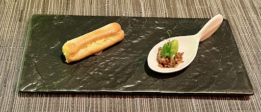 We booked a reservation here via our Vacation Package. We were served a set menu with a "Donald's Quacky Duck! Duck! Duck City!" theme. Aesthetically, it looked really nice. Definitely, fresh products were used. I liked most of the dishes in the course. I wasn't a big fan of the dessert. I did pay extra for my Magical art drink to come with an Alice in Wonderland art. It was worth it as I really enjoyed it. The service from all staff was on point. They introduced each dish to us and gave us ample time to finish our dish before moving on to the next, as you do. They even prepared for us some honeymoon decor for the table. They even took for us a honeymoon...