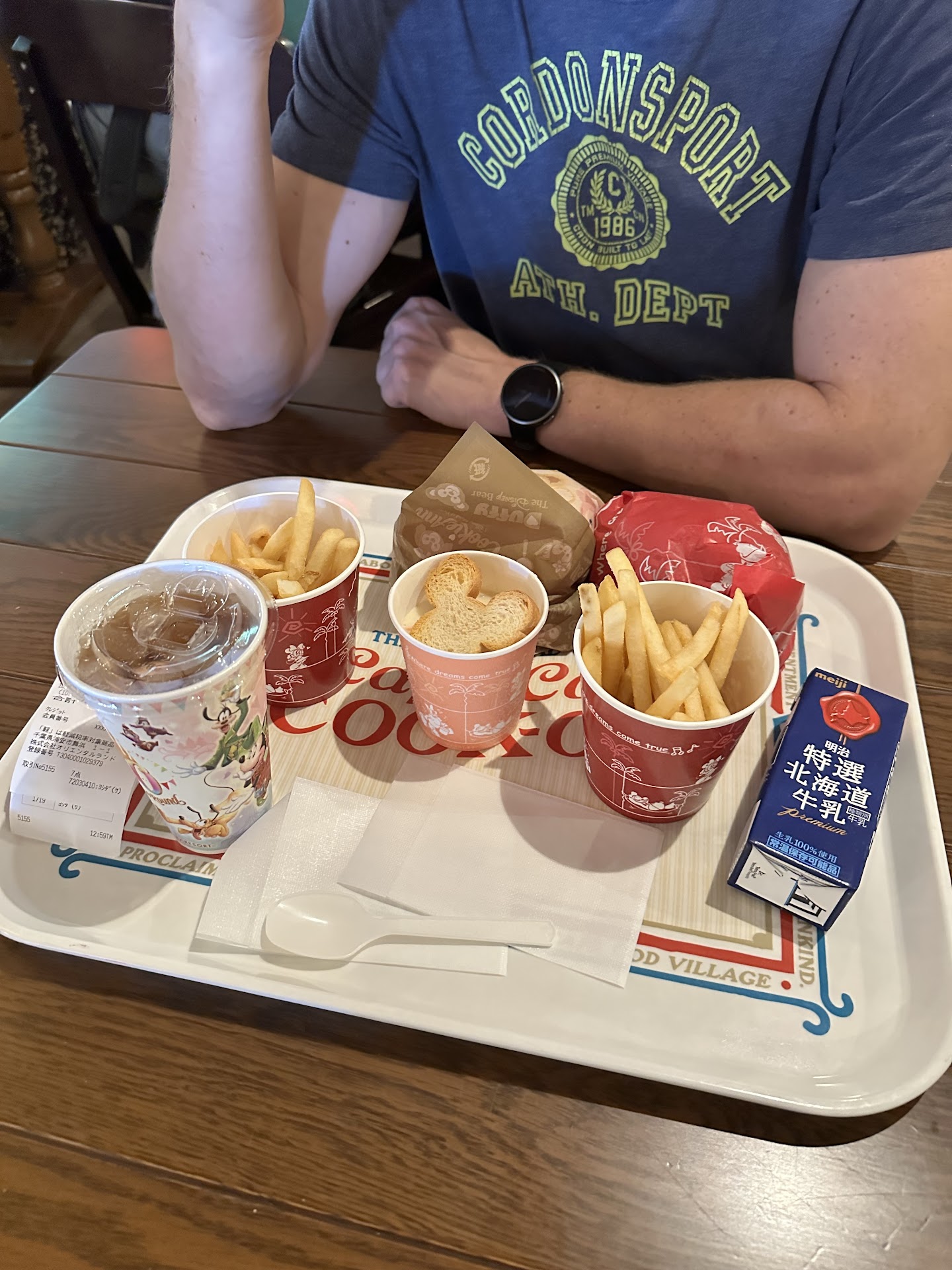 As for food, we ordered a bacon and egg burger and the prize set, i had the burger and it was very decent, fries were freshly made and nicely done with no soggy bits at all. Clam chowder was served hot, had plenty of ingredients and served with crispy slice of mickey shaped bread.